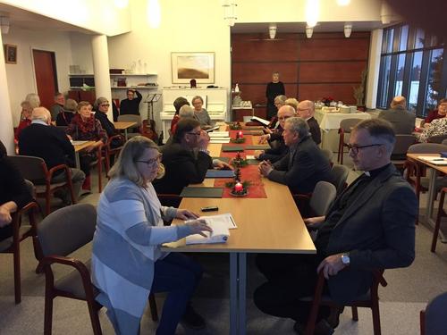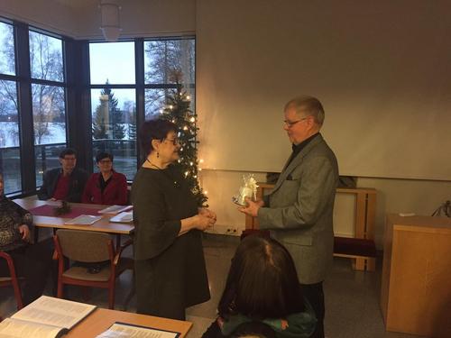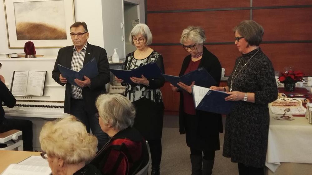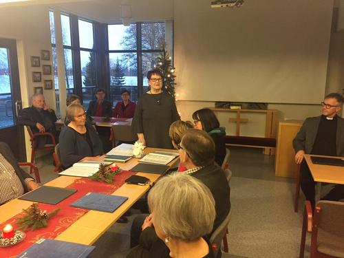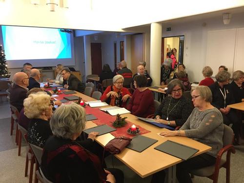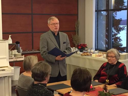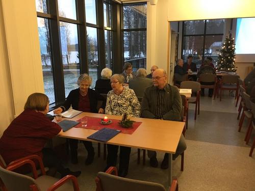 Tämän vuoden Adventinhartaus pidettiin jälleen Kirkontuvalla. Mauno Laakso teki jälleen suuren työn sen järjestämisestä ja ohjelman sisällöstä sekä tilaisuuden juontamisesta.Tilaisuus aloitettiin yhteislaululla: virsi 30. Sen jälkeen oli vuorossa Jouluevankeliumi, joka oli jaettu seitsemään osaann. Juhani luki jakeet 1-7. Ulla ja Kimmo lauloivat Marian poika: säkeet 1-3. TuireLaakso luki jakeet 8-12. Tarja lauloi Soi laulu enkelten: säkeet 1-3. Liisa Heinilä luki jakeet 13-15. Teuvo ja Mauno lauloivat Oi Betlehem sä pienoinen: säkeet 1-2.Seija Hänninen luki jakeet 16-20. Sen jälkeen yhteislaulu Joulun kellot: säkeet 1-4. Kirkkoherra Ari Auranen piti Adventin hartaushetken. Jälleen yhteislaulu Jouluyö, juhlayö: säkeet 1-3. Sisko-Maija esitti runon: Joulun aikaan. Kimmo Niskala kertoi, säesti ja lauloi omavalintaisen laulun. Ari Auranen piti loppurukouksen. Sen jälkeen yhteislauluna virsi 21: säkeet 1-3 ja 10. Ismo Pitkänen toimi tilaisuuden kanttorina ja laulujen säestäjänä. Alajärven Osuuspankki toimi tilaisuuden isäntänä. Myyntipäällikkö Anne Paavola kiitti yhdistystä kutsusta ja toivotti Osuuspankin puolesta hyvää Joulua sekä uutta vuotta 2019. Puheenjohtaja Seija Tuisku luovutti Mauno Laaksolle Jouluisen kynttilälahjan hyvin onnistuneesta tilaisuuden järjestämisestä. Tuleva vuoden 2019 puheenjohtaja Reijo Ojanen sekä Teuvo Kangas muistivat eroavaa puh.joht. Seija Tuiskua ja sihteeri Paula Nuolikoskea myöskin Jouluisilla kynttilälahjoilla. Seija Tuisku kiitti Kirkkoherra Ari Aurasta Osuuspankia ja Anne Paavolaa, kanttori Ismo Pitkästä, kaikkia esiintyjiä ja paikalla olleita senioreitä sekä toivotti kaikille hyvää siunattua joulua ja parempaa uutta 2019.