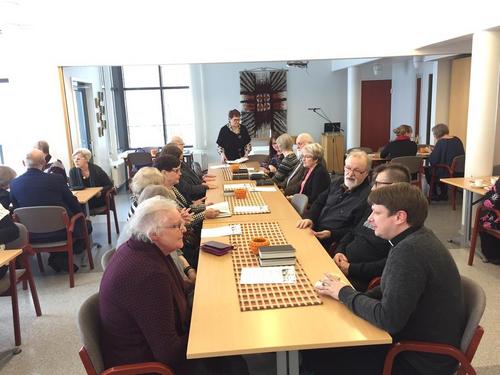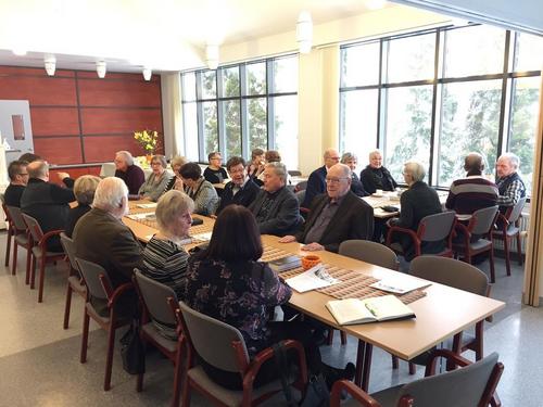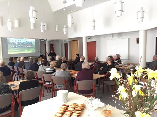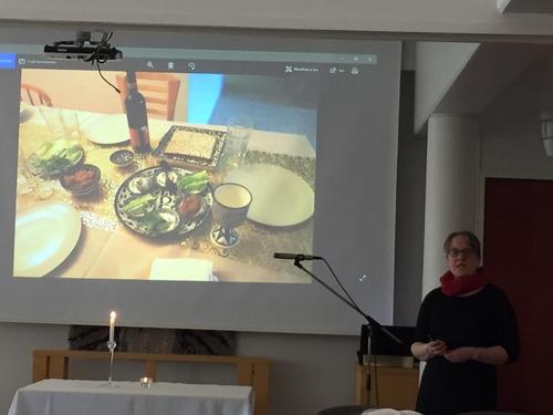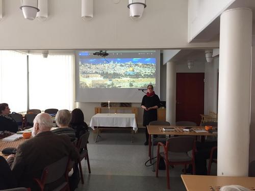 Perinteinen hiljaisen viikon tilaisuus pidettin Kirkontuvalla. Puh.johtaja Seija Tuisku toivotti lähetystyössä Israelissa olleet Maria ja Terho Kanervikkoahon sekä seniorit tervetulleeksi tilaisuuteen. Tilaisuuden alussa pidettiin hiljainen hetki ja sytytettiin kynttilä viime vuonna poisnukkuneen jäsenemme muistoksi. Tilaisuus jatkui virrellä 552 jonka jälkeen Maria kertoi sanoin ja kuvin lähetystyöstä Israelissa. Esim. arjen rutiinit toimivat suunnilleen samalla lailla kuin täällä Suomessakin. Ensimmäinen pääsiäinen pääsi yllättämään meidät sellaisella asialla johon emme olleet varautuneet, eli juutalaisen uskonnon mukaan pääsiäisenä ei saa syödä mitään hapanta. Kauppojen hyllytkin tyhjennettiin jo viikkoa ennen pääsiäistä kaikesta hapan tuotteista. Israel perustettiin Palestiinan alueelle vuonna 1948. Israel on valtiomuodoltaan parlamentaarinen demokratia ja olemukseltaan vahvasti "juutalainen valtio" Väestöltään Israel on kuitenkin monikansallinen ja uskontopohjaltaan moninainen. Israelissa on noin 8,3 miljoonaa asukasta joista 78 % on juutalaisia, 17 % arabeja ja loput 5 % ovat muita vähemmistöjä. Esityksen jälkeen laulettiin virsi 425 jonka jälkeen oli sitten vapaan sanan vuoro. Ennen loppuhartautta laulettiin virsi 78. Terho piti loppuhartauden ja kertoi samalla, että juutalaiseen pääsiäisjuhlaan liittyy oleellisena osana ateria. Ateria on myös keskeinen elementti pääsiäisjuhlaa jossa samalla myös muistellaan pääsiäisen tapahtumia.