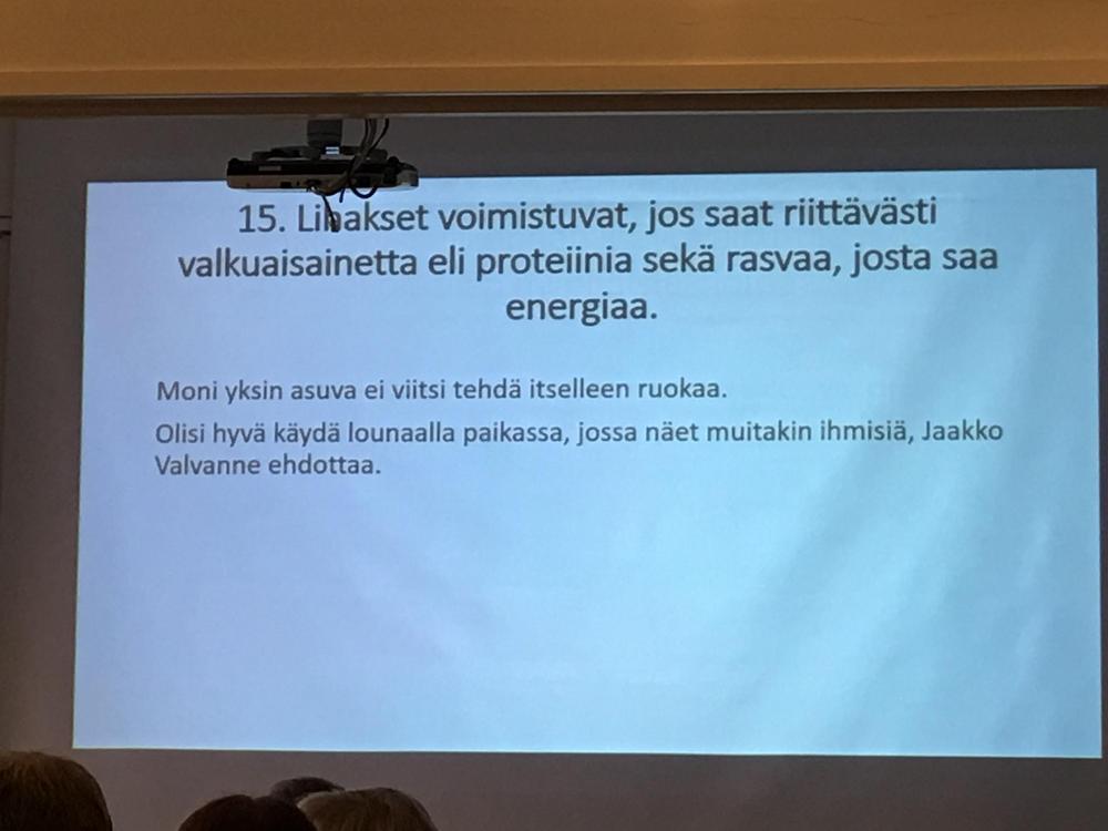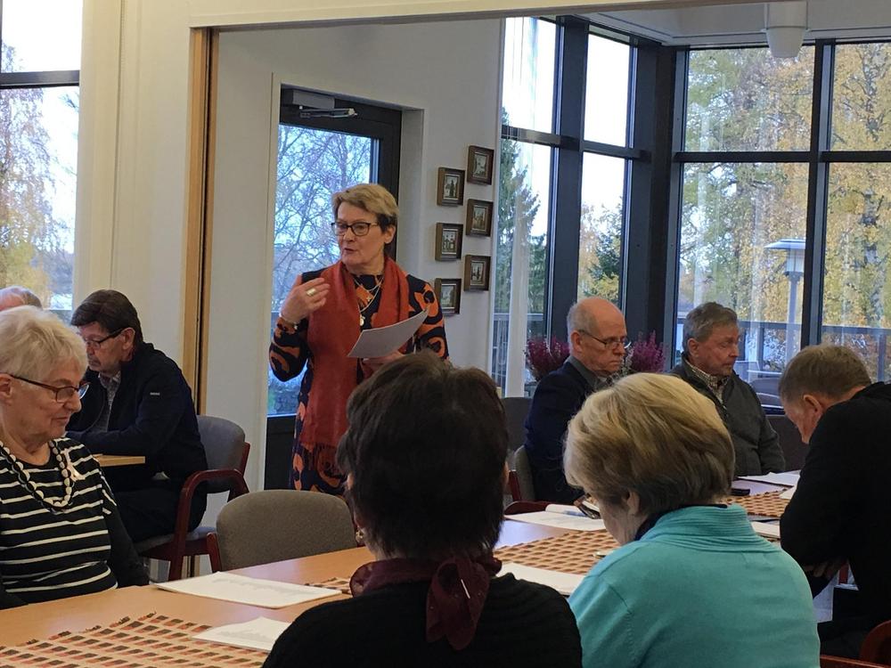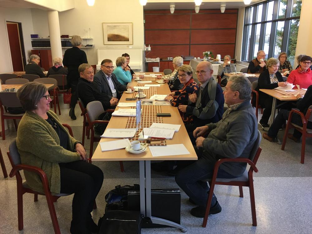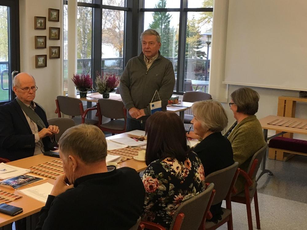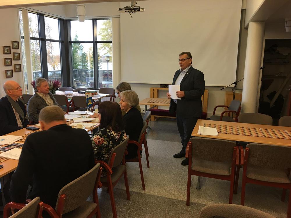 Puheenjohtaja Reijo Ojanen avasi kahvitilaisuuden ja toivotti seniorit tervetulleeksi. Keskusteltiin teatterimatkasta Vaasaan 26.10 klo 13.00 jossa on meneillään musiikkikomedia "Piukat paikat. Päätettiin lähteä katsomaan näytöstä. Juhani Hämeenniemi piti luennon "Varaudu vanhuuteen" haluatko palvelutaloon ? jos et halua niin toimi näin. On 18:sta syytä liikkua. Mielenkiintoinen luento joka pani miettimään mitä minä itse voisin asialle tehdä omalla kohdallani. Tarja Åkerman lauloi laulun. Reijo kertoi neljän piirin tapahtumasta joka pidettiin tänä vuonna Seinäjoella. Maire Hämeenniemi kertoi tuetuista lomista. Esim. "Maaseudun terveys ja lomahuollosta sekä Naiset yhdessä järjestää lomia". Myös muita tuetun loman järjestäjiä on. Keskustelussa tuli esille se, että seniorit ovat hakeneet hyvin huonosti tuettuja lomia. Tilaisuuden emäntinä häärivät Mirja Hallpuro-Kujala ja Ulla Ylitalo.Tilaisuuden päätteeksi pidettiin perinteiset arpajaiset.