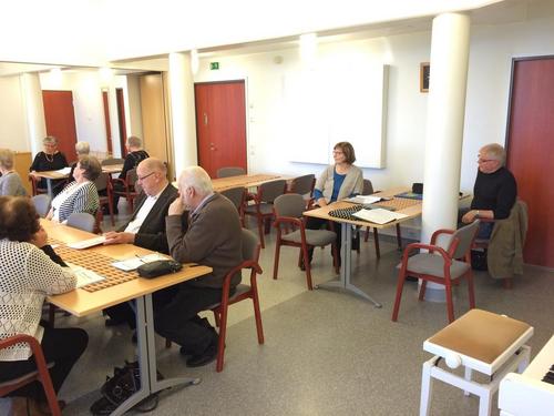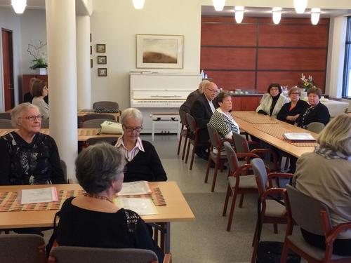 Kokoonnuttin jälleen Kirkontuvalle kahvitilaisuuteen. Puheenjohtaja Pertti Ala-Piirto avasi tilaisuuden ja toivotti seniorit ja Pohjanmaan Kansallisen Senioripiirin puheenjohtajan Margit Sasin tevetulleeksi vieraaksemme. Mauno Laakso hoiti jälleen laulujen säestykset ja kokeiltiimpa sellaistakin, että laulun sanat vihelletään. Mutta kovin oli tulos heikko. Ehkä se vaatii kuitenkin harjoittelua. Kuka tietää ehkäpä vielä joskus kuullaan laulu viheltäenkin. Tilaisuuden lopuksi suoritettiin arpajaiset.