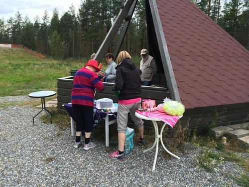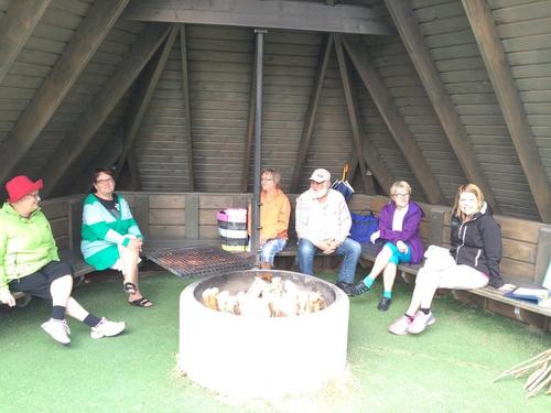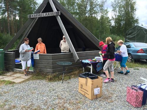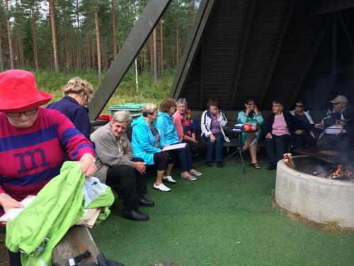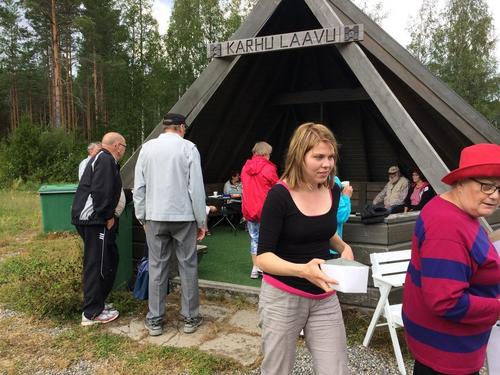 Elokuussa vietimme jälleen ulkoilupäivää Karhulaavulla. Monenmoista touhua ja yhdessäoloa. Iltapäivän aikana saimme nauttia kahvista sekä makkaranpaistosta. Pääsimme myös testaamaan tietämystämme eri kasvilajeista. Sekä siitä, että pystymmekö tunnistamaan erilaisia esineitä jotka olivat laitettu pussiin niin että niitä ei voinut tunnistaa muuten kuin sormin koettelemalla. Yksi hauska tehtävä oli myös muotokuvan tekeminen henkilöstä niin, että paperi oli maalaajasta poispäin eli hän ei nähnyt mitä paperille piirsi.