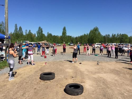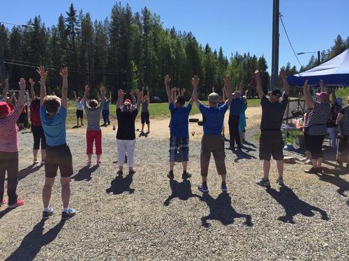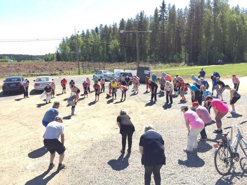 Terttu Kilpinen kertoi arvonnasta ja myös siitä, että arpapalkintoja oli lajoittanut seitsemäntoista yritystä sekä kuusi yhdistyksen jäsentä. Tuija Silver-Lager ja Emma Jokiaho hoitivat fyysisen puolen, eli laittoivat meidät venyttelemään. Myös tarkkuusheittoa kokeilimme heittämällä kahvakuulaa muutaman metrin päässä olevan auton renkaan sisälle. Näiden lisäksi pitäjämme oma monitoimimies Kimmo Niskala laulatti meitä ja hänen johdollaan saimme hyvää aivojumppaa arvoituksien muodossa.