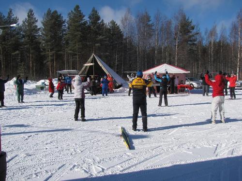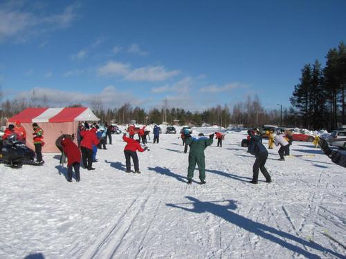 Liikuntapäivä kokoksi yhteen ison joukon senioreita Karhulaavulle liikkumaan ja nauttimaan yhdessä olosta. Tuija Silver-Lager piti senioreille ns. sauvajumppaa ja innokkaat osallistujat saivat liikettä niveliin. Lopuksi käristettiin laavutulen ääressä makkaraa.