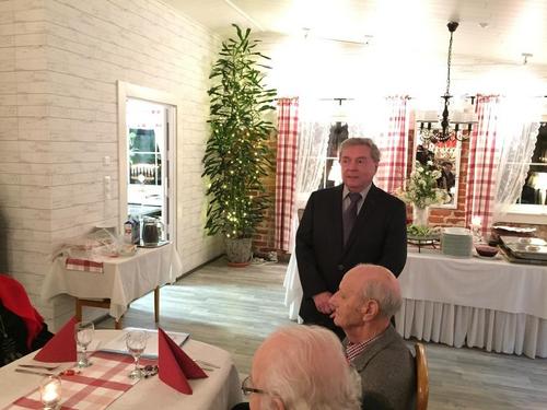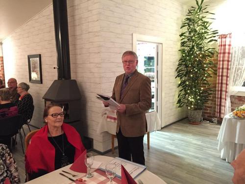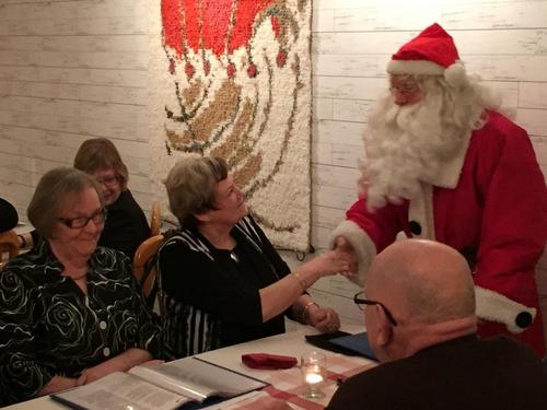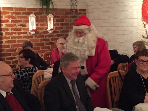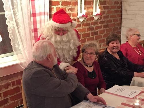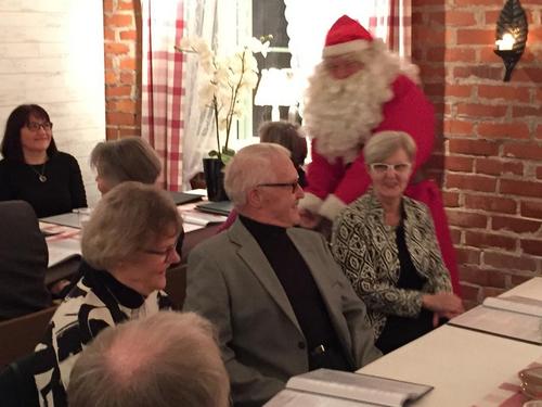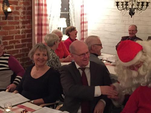 Pikkujoulua vietettiin jälleen Heikkilän pitopalvelun tiloissa Koskenvarrella. Juhlaan saapui meitä juhlijoita yli neljäkymmentä joten tilat täyttyivän hyvin. Reijo Ojanen avasi pikkujoulun. Mauno Laakso oli laatinut pikkujoulun ohjelman ja hoiti myös sen juontamisen mallikkaasti. Mauno Laakso myös säesti tilaisuudessa lauletut Joululaulut. Tilaisuus aloitettiin "Jouluyö juhlayö" laululla. Sisko-Maija Sillanpää esitti runon " Kaikki kauniit muistot " . Sisko Panula luki Marjatta Juutin kirjoittaman kertomuksen " Pienen tytön joulun odotuksesta ". Sen jälkeen päästiin nauttimaan Heikkilän pitopalvelun runsas ja maukas jouluateria. Vatsat täynnä jäätiin odottamaan Joulupukkia ja sen tuomia " lahjoja " . Pukki ovelle kolkuttaa" laulun sanoin toivotettiin joulupukki sisään ison lahjasäkin kanssa. Pukki hauskutti ja kätteli kaikki yksitellen ja mikä muisti pukilla oli kun tiesi kaikkien nimetkin. Kimmo Niskala säesti " suihdut sammuu " yhteislaulun ja piirileikkiesitykseen mukaan pääsi myös joulupukkikin. Kimmo säesti ja lauloi Jukka Salmisen laulun " Joulu saapuu jokaiselle sekä yhteislaulun " Joulukirkkoon ". Mauno ja Teuvo esittivät pienen sketsin " kaverukset kalassa " johon oli lainattu osin Arto Juurakon tekstejä. Kahvin ja maukkaiden leivosten nauttimisen jälkeen Pertti Ala-Piirto kiitti senioreita ja toivotti hyvää Joulua ja onnellista vuotta 2017. Loppuvirtenä Mauno Laakson säestyksellä laulettiin yhdessä seisaaltaan " Maa on niin kaunis ". Kiitoksia senioreille vuodesta 2016.