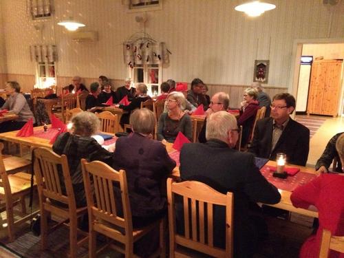 Seniorit olivat jälleen isolla joukolla lähteneet viettämään perinteistä pikkujoulua.Tällä kertaa paikkana oli Punaisen tuvan viinitila. Mauno Laakso avasi tilaisuuden ja toivotti seniorit tervetulleeksi viettämään yhteistä pikkujouluhetkeä viinitilalle. Mauno palasi avauksessaan menneisiin jouluihin aina sinne lapsuuden ajoille saakka. Marjatta Juuti kertoi mielenkiintoisesti tarinan kuusta katsellessa. Tuli mieleen myös omat kuusenhaku matkat silloin ennen. Välillä laulettiin Maunon säestyksellä tuttuja joululauluja. Mauno johdatti myös seniorit piirileikkiin tonttujen jouluyön sanojen ja sävelten tahdittamana osa lauloi ja osa senioreista leikki laulun sanojen mukana. Herkullisen ja maittavan jouluruon jälkeen Teuvo ja Mauno esittivät sketsin "tapaturma". Joulupukkikin kävi tervehtimässä meitä senioreita ja toipa vielä lahjankin, oikein vanhanajan nisupojan karkkien kera. Lopuksi juotiin maittavat kakkukahvit. Kiitokset Senioreille vuodesta 2015 ja hyvää uutta vuotta 2016.